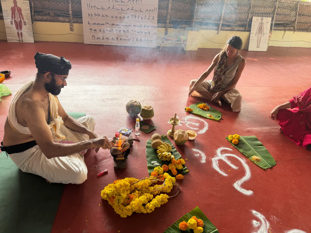- Modest Clothing: Kerala is traditional. Wear clothes that cover shoulders and knees when outside the yoga shala. White clothing is often required for ceremonies.